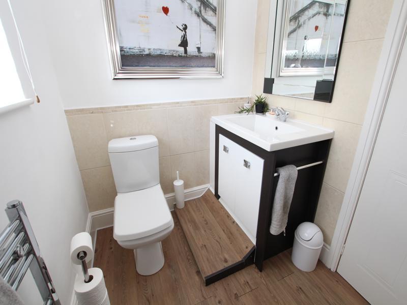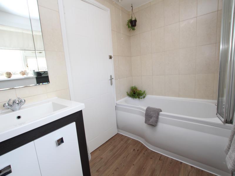 Bathroom - Modern three piece white suite, part tiled walls and heated towel rail.
