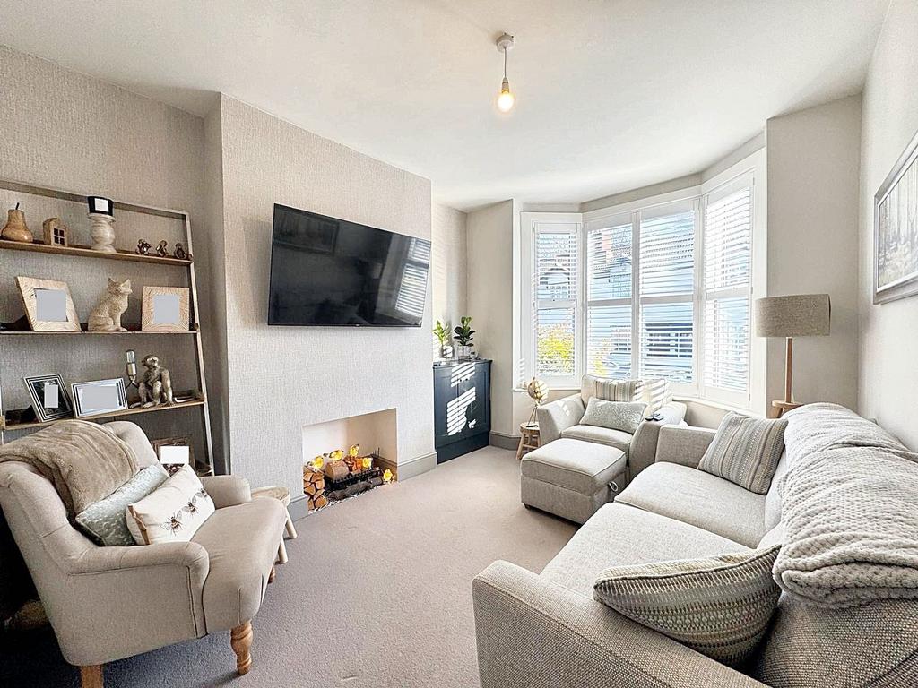 Bay window to the front elevation complete with fitted plantation shutters. T.V Point.