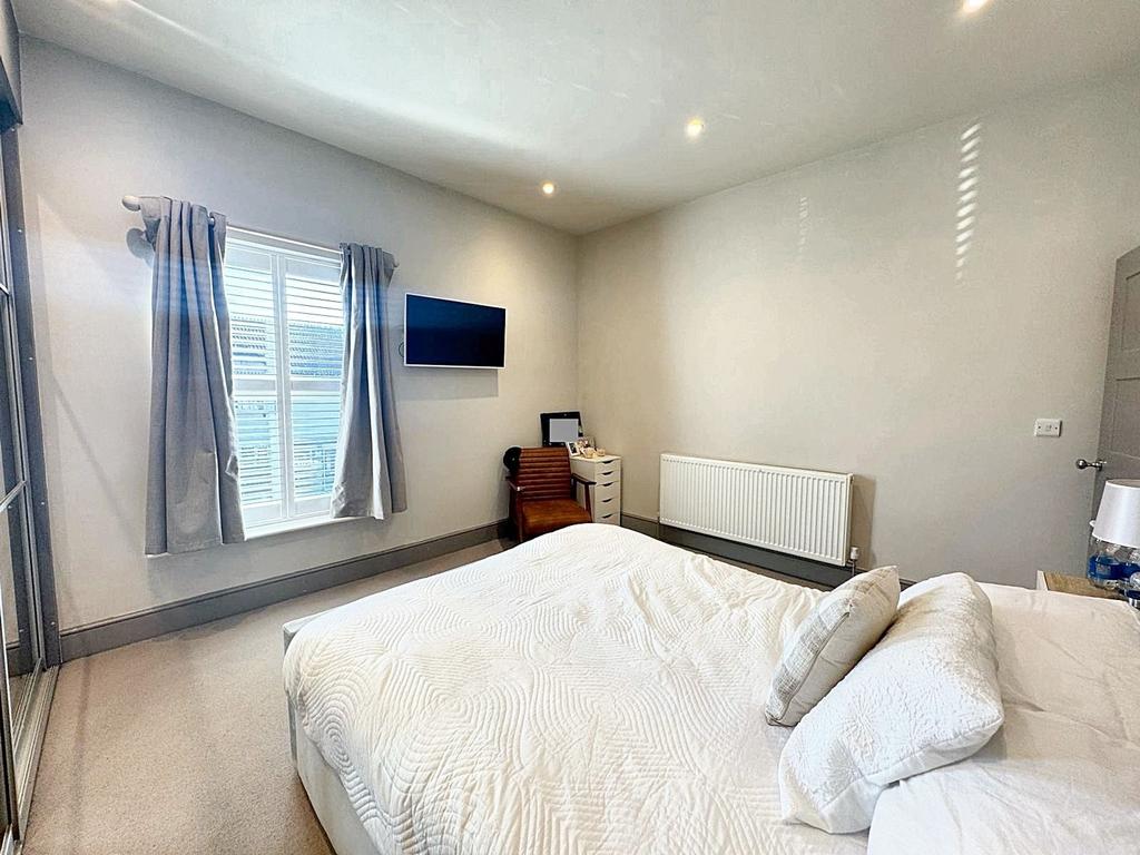 Window to the front elevation complete with fitted plantation shutters. Fitted wardrobe to one wall. T.V point. Inset spotlights.