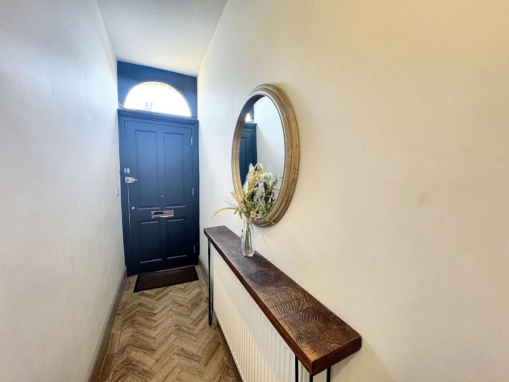 External door to the front elevation with a window above. Staircase leads to the first floor landing. Internal doors lead through to: