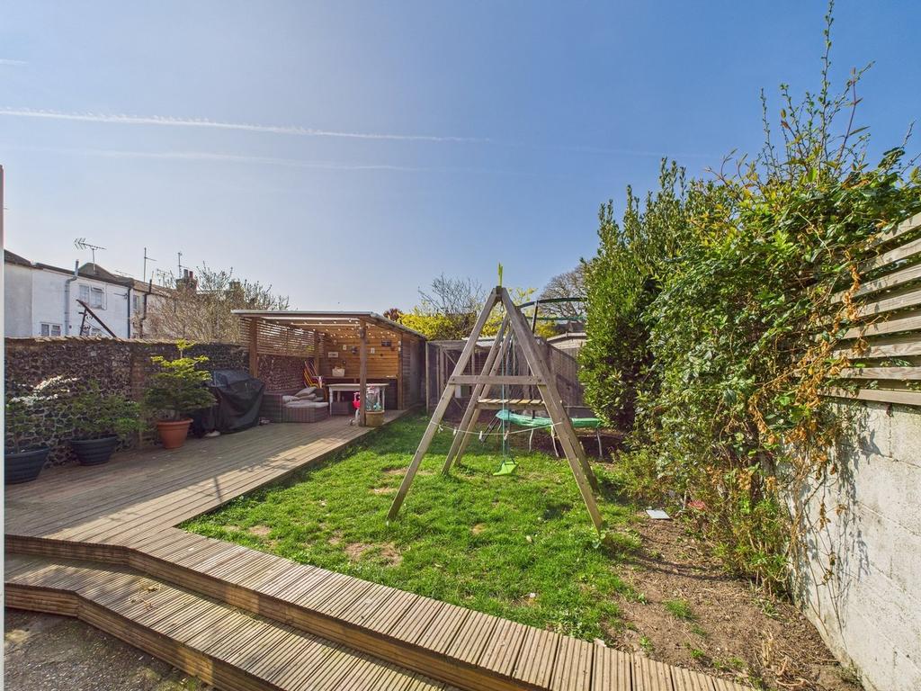 10.2m x 6.75m (33' 6" x 22' 2") The rear garden is South facing and benefits from a partly lawned area and a partly decked seating area, two storage sheds and a side access gate.