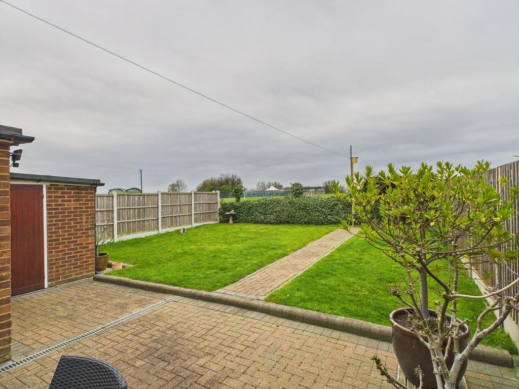 Approximately 50' in length with a block paved patio area, remainder laid to lawn.
