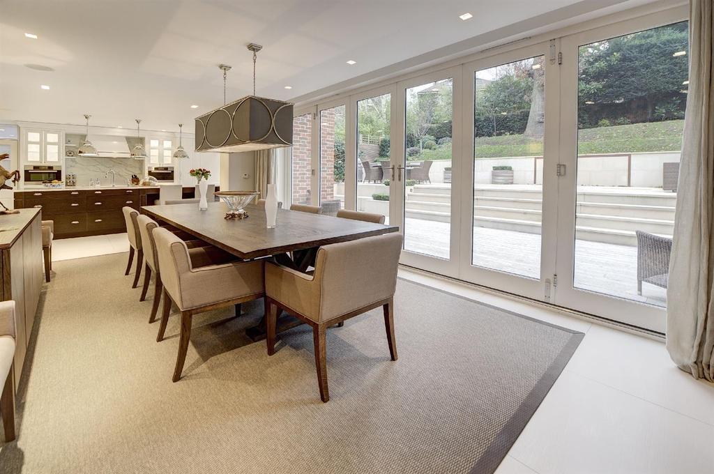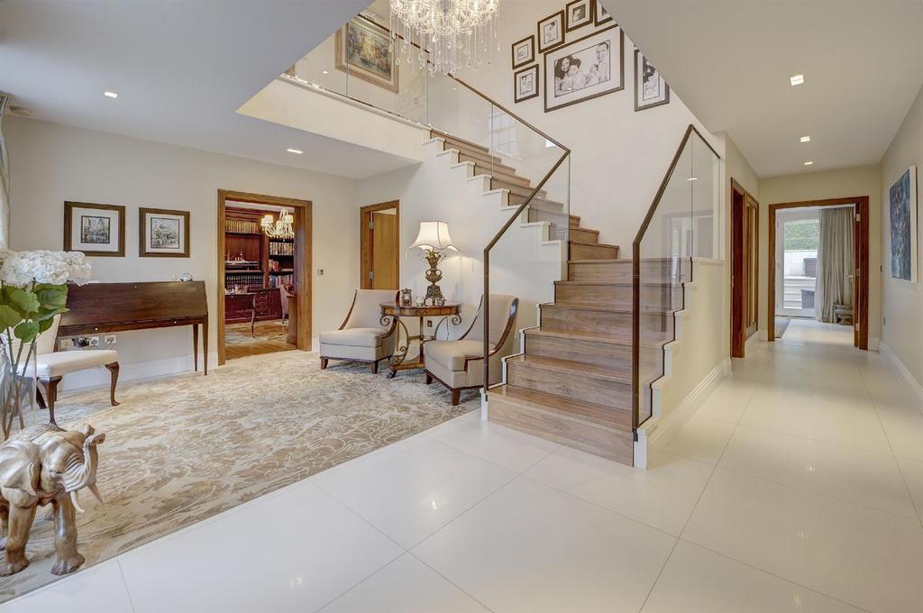 The lateral accommodation is predominantly arranged over three floors and provides a well-appointed master bedroom suite, five further double bedroom suites, four principal reception rooms, games/family room, and gym/cinema room.