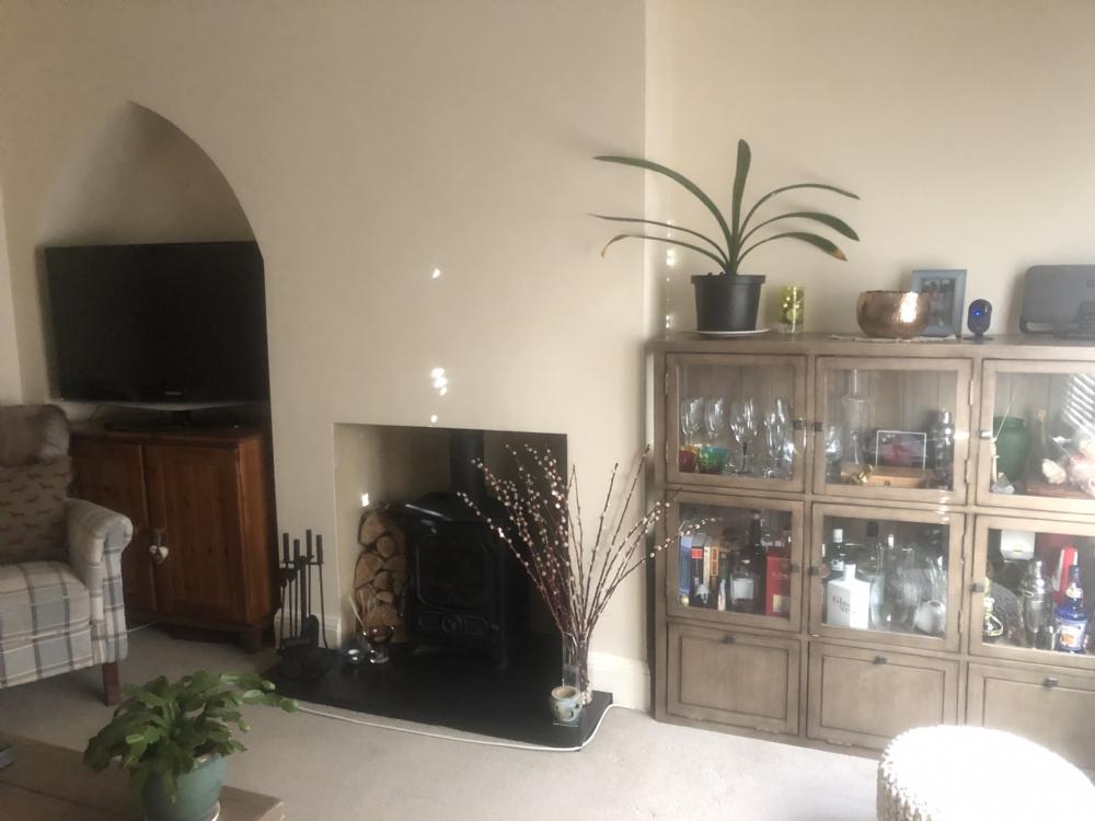 Wood burning stoveRadiatorUnder stairs cupboard with lightVenetian blinds