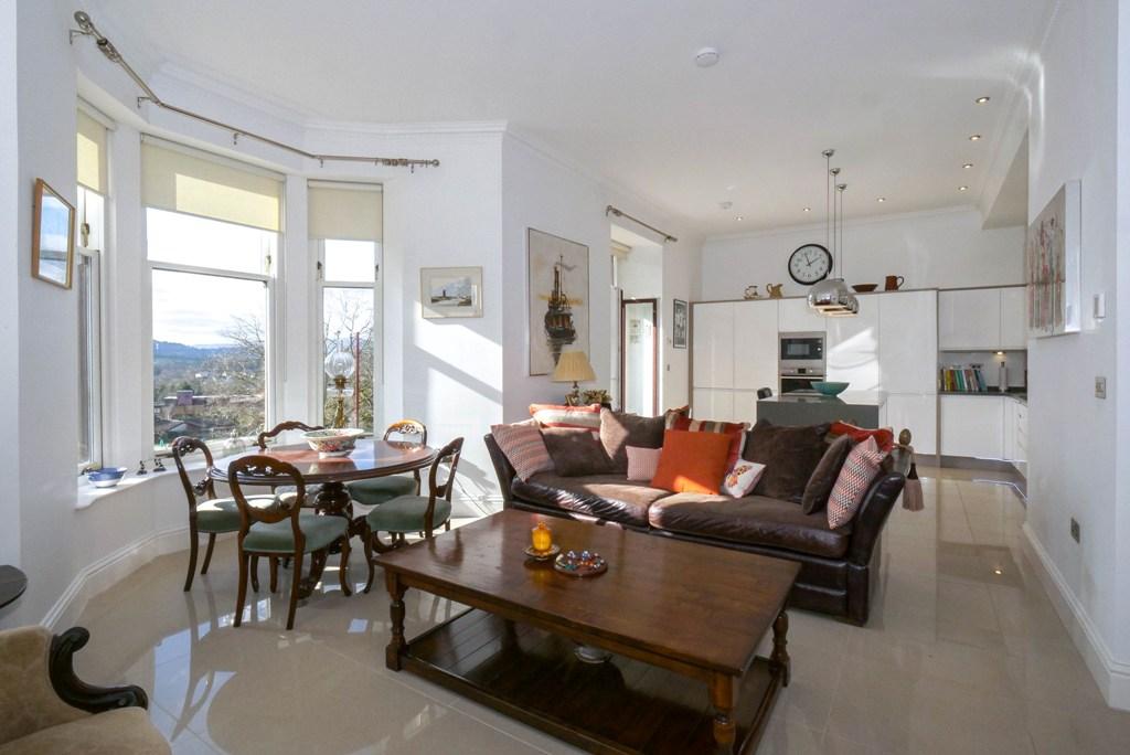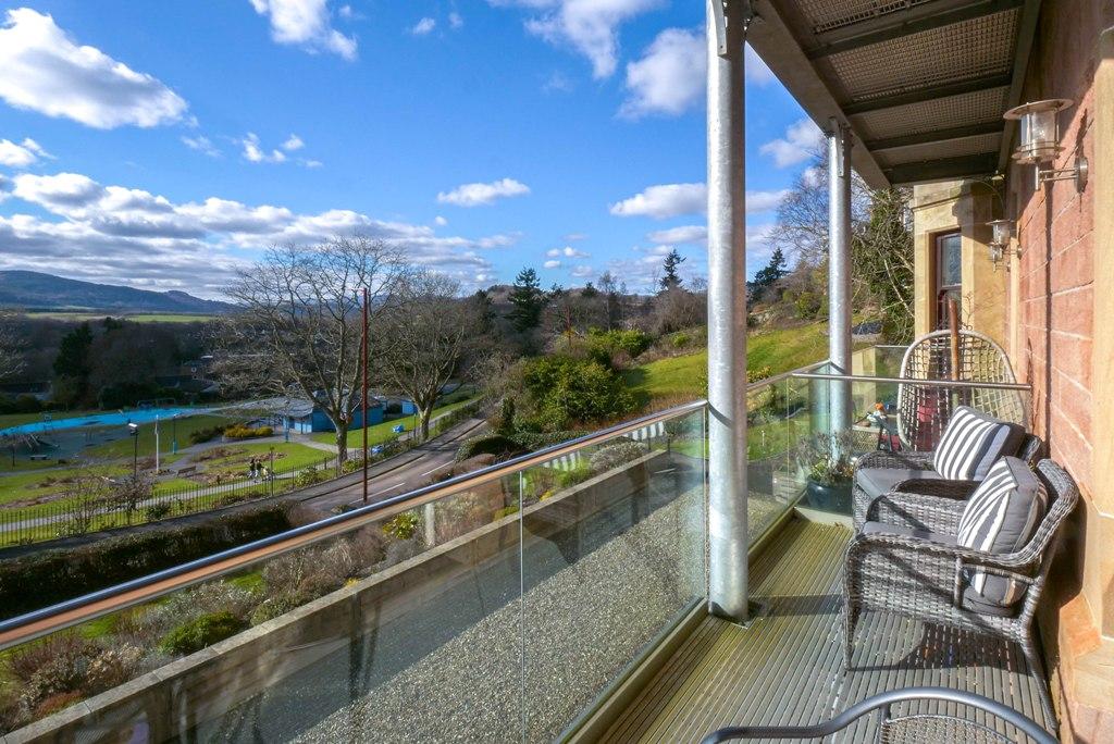 A stunning & spacious main door two bedroom apartment located in a converted period property, formerly a boarding house for Morrison’s Academy. Completed in 2013, creating nine luxury apartments, only two of which enjoy main door access. Beautifully presented with contemporary finishing, the accommodation comprises; HALL, LOUNGE open to a superb BREAKFASTING KITCHEN with a private balcony off, 2 DOUBLE BEDROOMS and luxury BATHROOM. The energy efficient property is warmed by gas fired under floor heating and is double glazed throughout.