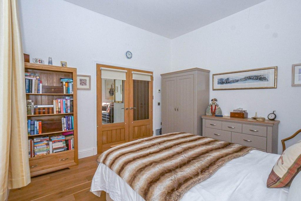 Large bedroom with double doors into the hall. A generous room with ample space for free-standing furniture.