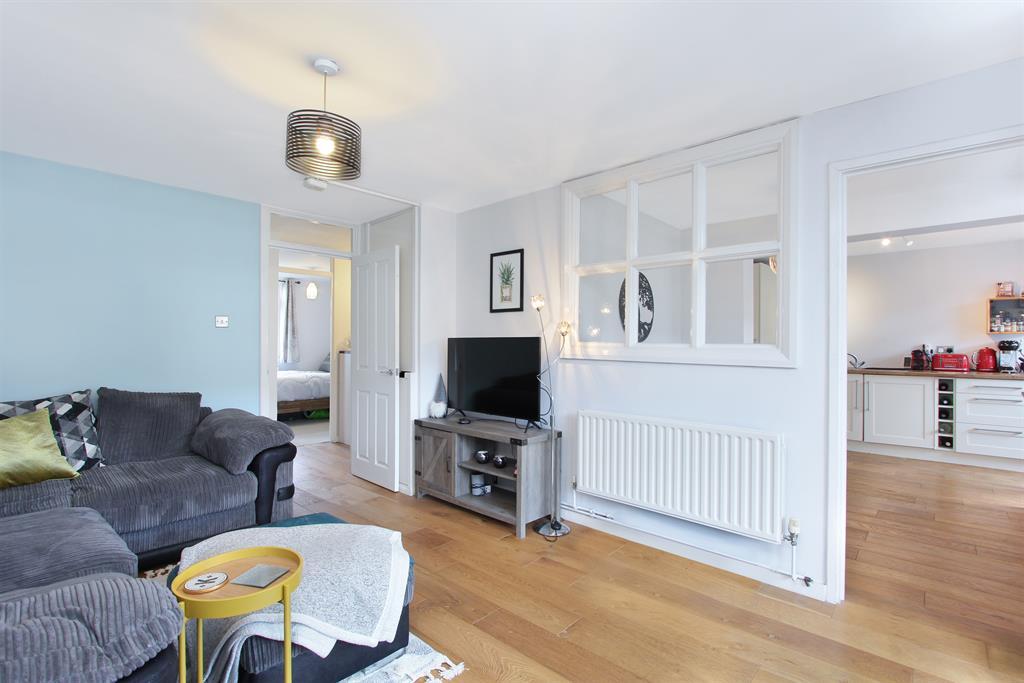 The property is wonderfully bright and well cared for, the reception room is generously proportioned and has lovely oak flooring and crisp white walls. There is a natural dining space under the window or if you work from home this is the perfect spot for your home office. Floor to ceiling windows and a door mean it is awash with light and the reception rolls out on to a southwest facing terrace. Surround yourself with your favourite plants and herbs, it is a lovely spot to watch the sunset at the end of long day or to enjoy a morning coffee. Conveniently adjacent, you have a well-equipped and spacious kitchen/diner - with the same lovely oak flooring that graces the lounge, shaker style units are a timeless classic and butchers block effect worktops contrast nicely. The appliances are integrated, there are an additional two storage cupboards and plenty of worktop space for food prep. There is space for a table and chairs and a glass wall helps make this a sociable bright space. Both bedrooms will accommodate a double bed and furniture, with soft carpeting and neutral décor. On the opposite side of the hallway, there is a modern three-piece bathroom suite with stone coloured tiles, a shower over the bath and a vanity unit with a wash basin and W.C.