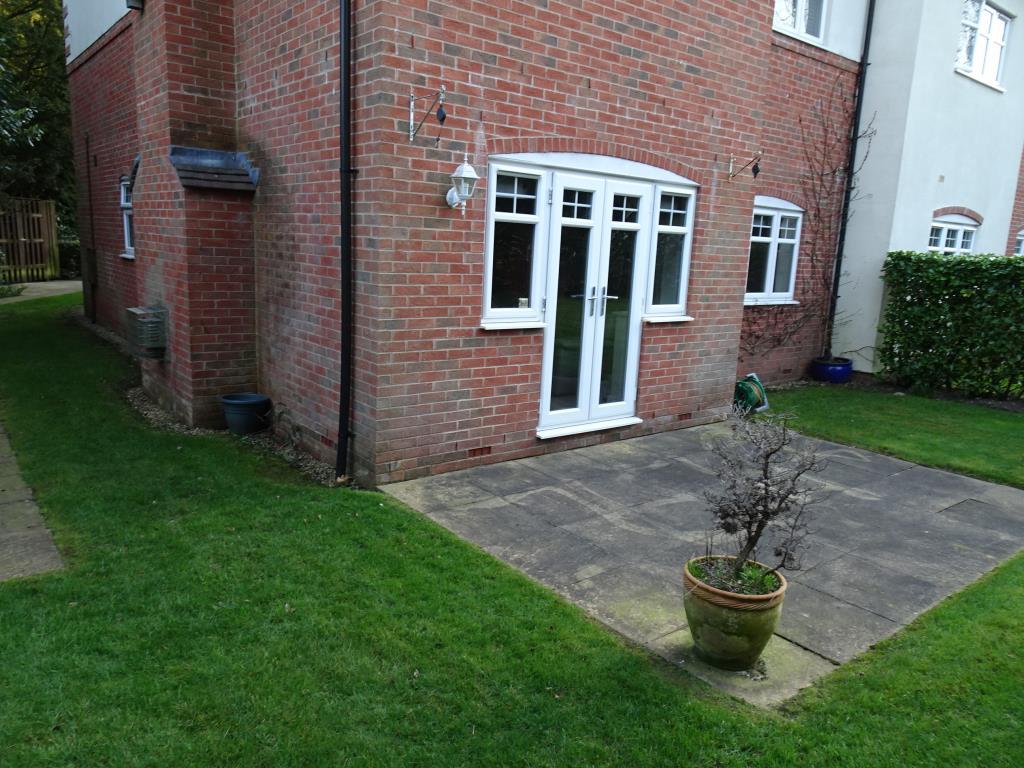 Generous private entrance hallway leading to all rooms, accessed direct from outside. The large fitted kitchen leads to the living and dining area, sliding doors separate the spaces. The living area also benefits from French doors accessing a small patio area in the landscaped communal gardens.