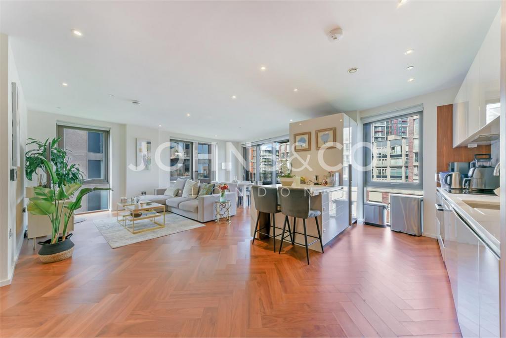 A stylish 9th floor, two bedroom/two bathroom luxury apartment set in Capital Building, in the hugely popular Embassy Gardens Development in Nine Elms. Boasting over c. 1023 sq ft, the open plan living provides ample space for dining and entertainment and features floor to ceiling windows, wood flooring, marble work surfaces and the latest home appliances. The apartment also benefits of a River Thames facing private balcony.