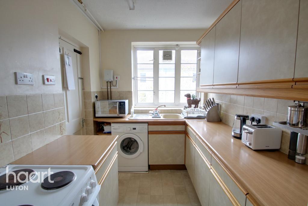 A range of base and eye level units, sink/drainer with work surface, space for cooker. Plumbing for washing machine, tiled floor. Double glazed window to rear aspect.