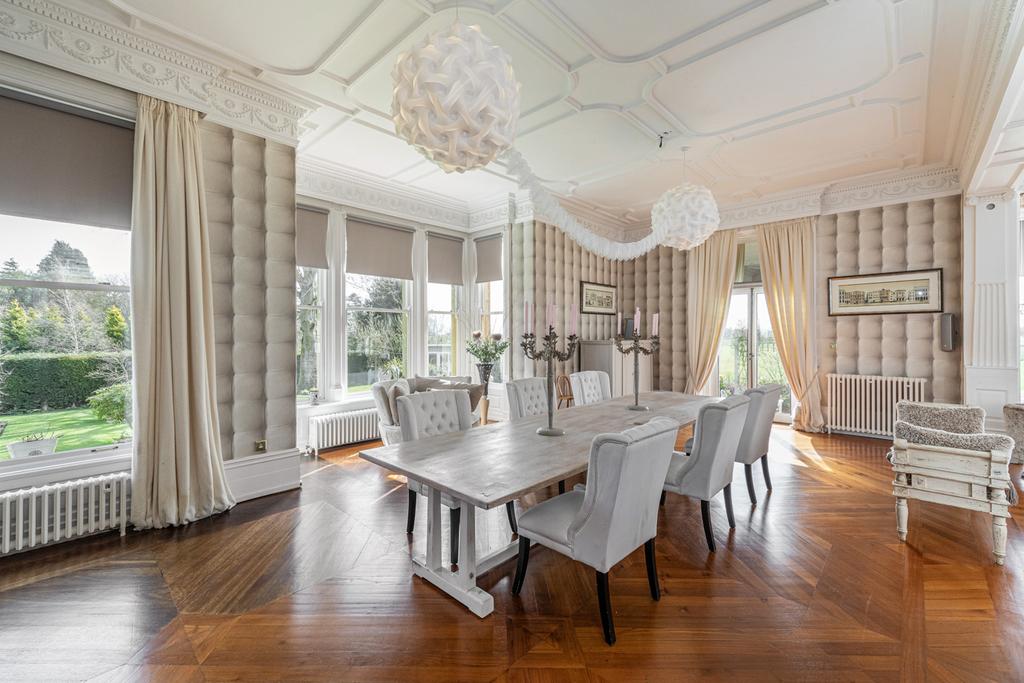 A spectacular drawing room is located off the dining hall. This is truly a room of splendid proportions offering further period features and fireplace, large bay window overlooking the rear garden and a dual aspect which floods the room with natural light along with French doors to the side garden.
