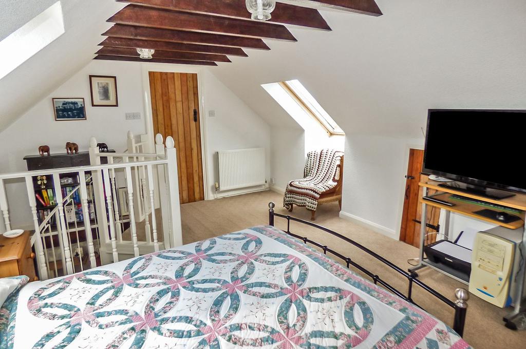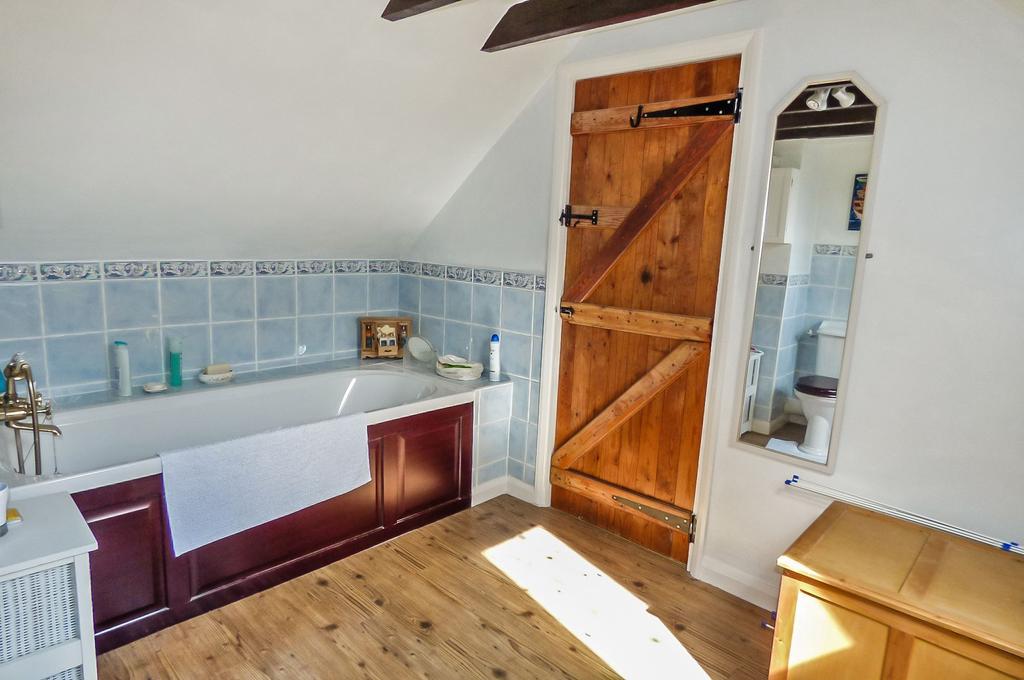 A double bedroom with roof lights to both the Northerly and Southerly elevations, storage cupboards and central heating radiator, access to the en suite bathroom.