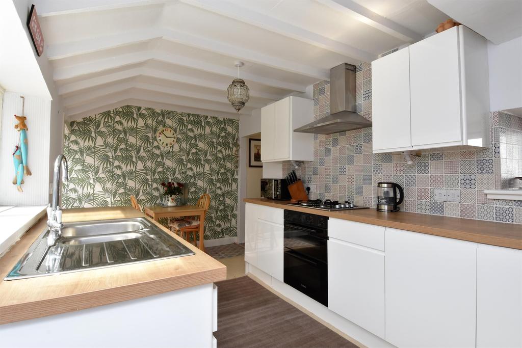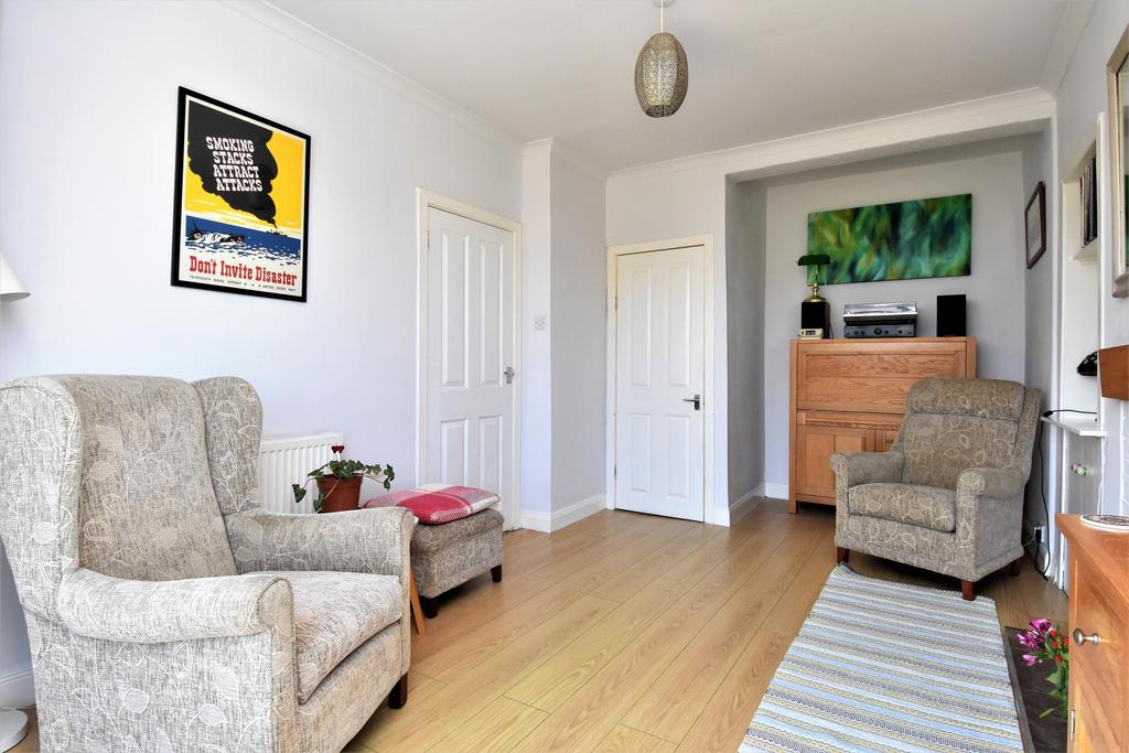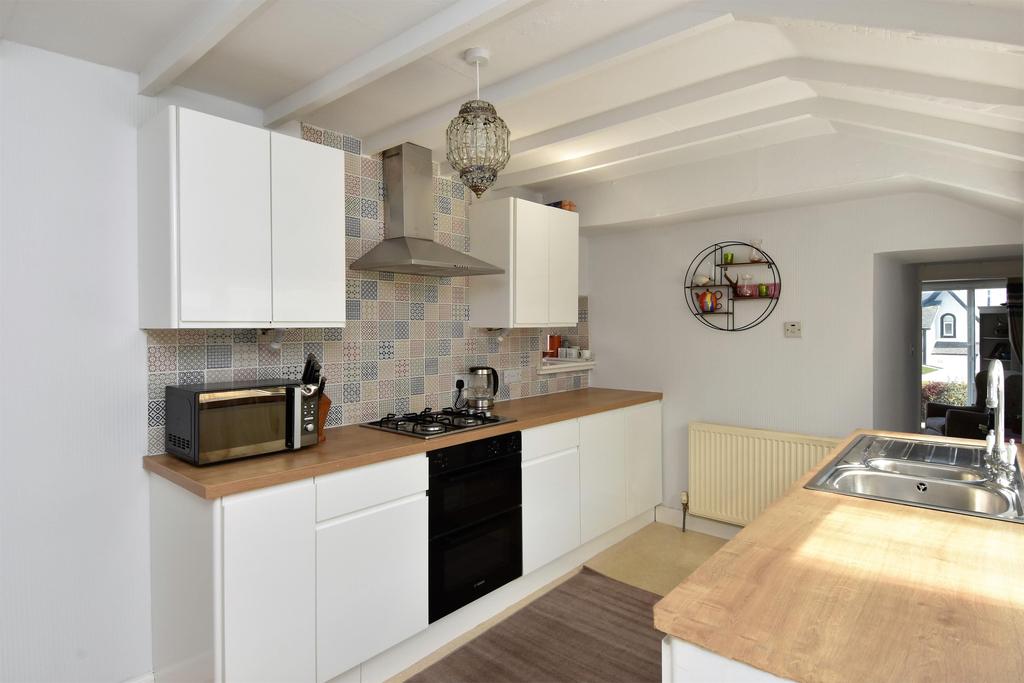 The kitchen, which was fitted in 2019, is a fresh, timeless style and comprises floor standing and wall mounted cupboards, sink, oven, extractor hood and gas hob. Windows look out into the the glazed utility area and there is space for a two or three person table and chairs. A door from the kitchen leads into the utility area.