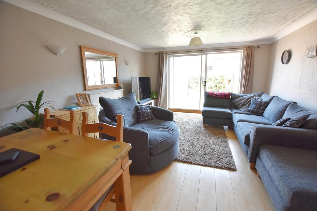 Lounge Diner to Rear 12' 11" x 16' 9" (3.94m x 5.11m) With double glazed sliding patio doors to landscaped rear garden, coving to ceiling, two ceiling light points, wall lighting, feature fireplace housing living flame effect gas fire with marble effect hearth and surround, under-stairs storage cupboard and laminate flooring