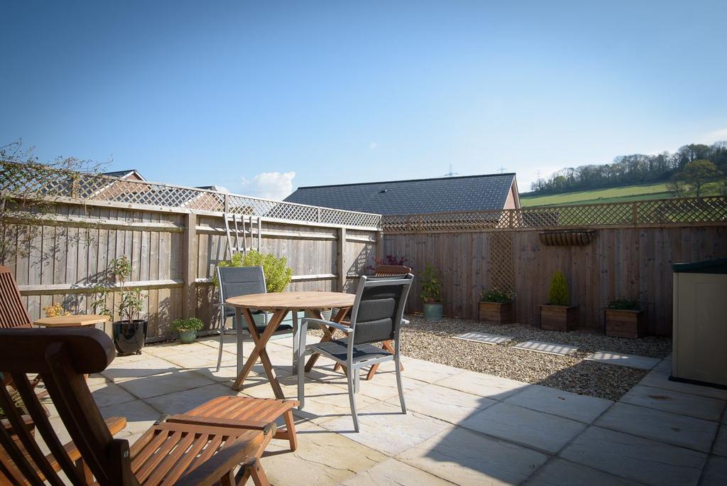 Private rear garden, enjoying views over open countryside, bound by fencing, side door to garage.