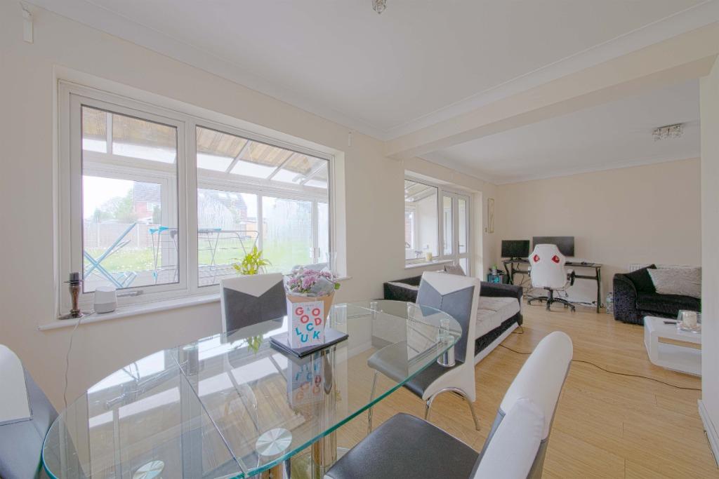 MORE PHOTOS COMING SOON - The property comprises of an entrance area with laminate flooring which follows through to a large spacious living/dining room with access to the conservatory and garage with electric door. A large kitchen with appliances, breakfast bar and a back door for side access. The first floor comprises of three bedrooms all with carpet and fitted wardrobes and a family bathroom with chrome fittings and fixtures. EPC rating: D.