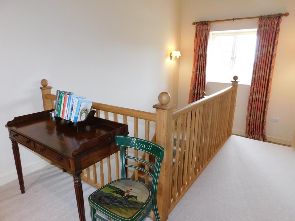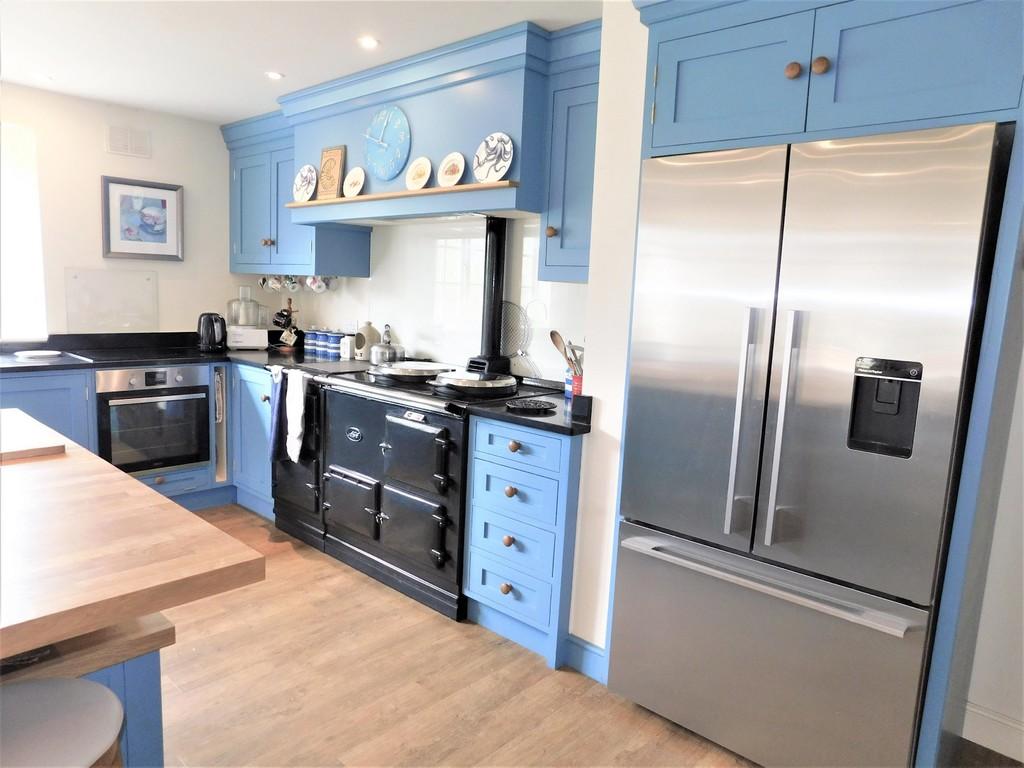 The central grand entrance hall has a galleried stair case to the first floor plus alarm which is linked back to a security company (at an additional cost). To the right of the hall is a dining room big enough for a large dining table to seat 8-10 people, a lounge over looking the rear of the property which has an open fire and a library area plus cloaks/wc. To the left of the hallway is the stunning farm house kitchen with central island with beech worktop and wine fridge, huge oil fired Aga and integrated electric oven, electric hob, dishwasher plus stainless steel American style fridge/freezer. This Bespoke kitchen has granite worktops to finish it off. A large larder is useful storage off the kitchen. The kitchen has a living area with plenty of room for a sitting area in front of the wood burning stove and a dining area. There are doors off to the patio.