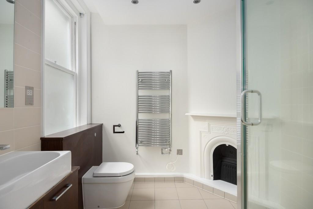 On the third floor, with lift access, this spacious two-bedroom apartment has all the character of a period mansion block blended with a modern-day interior. The master bedroom has a walk-in wardrobe leading into an ensuite shower room, complete with a picturesque feature fireplace. Useful fitted wardrobes can be found in the second bedroom, there is a further guest bathroom and the spacious separate kitchen has white units teamed with a black worktop. The pretty bay window can be found in the reception room and secondary glazing in the principal rooms has been fitted for tenant comfort.