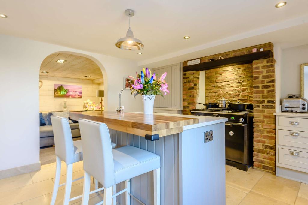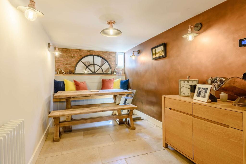 The garden is set to the rear of the property and is laid to lawn with a mixture of brick and flint walls and wooden fencing. The double garage is also accessed via an entrance to the rear of the property. There is additional parking to the side of the annexe. To the front of the property is a garden with iron railings, hedging and path to the front door.