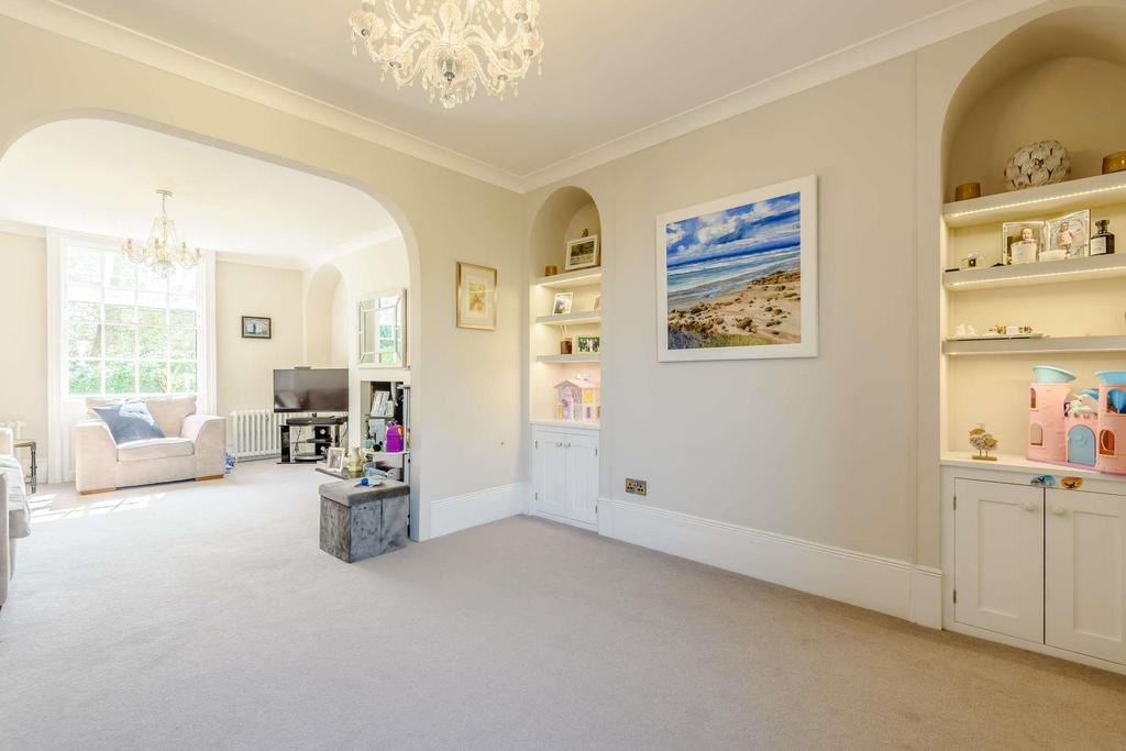 This elegant Grade II listed Regency property has been completely renovated, remodelled and modernised both inside and out by the current owners, yet retaining many original features throughout. The property is believed to have been originally completed in the early 1800's. The house can be accessed from both the front via an elegant front entrance with veranda or via the back where driveway parking is available for four to five vehicles. When entering the back entrance you enter the lower ground floor utility stable door and annexe area. The annexe provides a double bedroom, shower room and boot room, ideal as a guest suite. The bespoke hand made kitchen has been designed and created beautifully providing extensive storage, integrated Miele appliances (combi oven, warming drawer, dishwasher) plus a Range cooker, Silestone worktops, limestone flooring and zoned underfloor heating throughout the lower ground floor. There is a central island with prep sink and a Perrin & Rowe purified water and instant hot tap, seating, a snug/playroom and a dining room. Under the stairs is a cloakroom and the stairs lead up to the ground floor into the welcoming entrance hall with beautiful marble flooring. The spacious sitting room is dual aspect