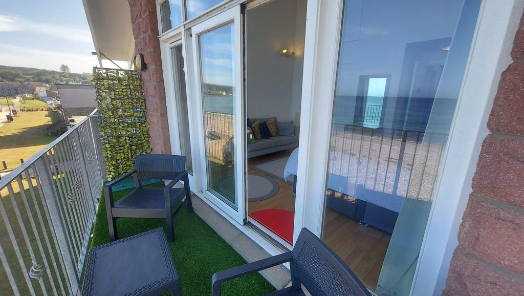 Uninterrupted seas views from this modern three-bedroom beach front apartment overlooking the bay of Stonehaven.