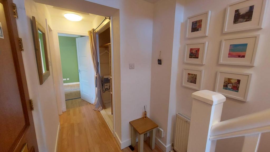 The upper king-size bedroom is ensuite with shower, tiled flooring and heated towel rail. The main bathroom has bath, shower and heated towel rail.
