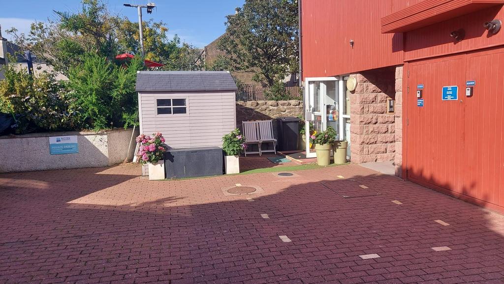 A dedicated parking space is located within the courtyard, additional on-street parking nearby.