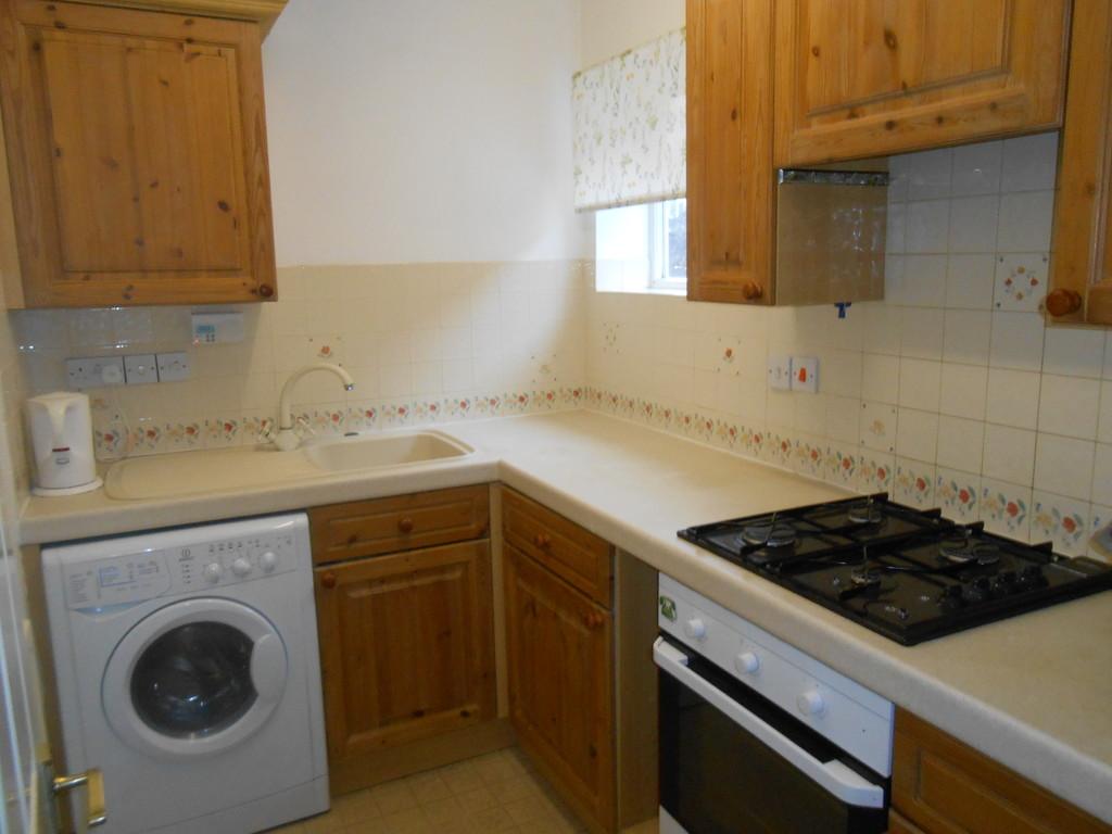 Kitchen: 8'6 (2.6m) x 6'2 (1.9m), Pine base and wall units, roll-edged work tops, integrated oven, hob with fan oven, integrated fridge and small freezer, automatic washer, double glazed window with blind, gas central heating boiler, tiled floor, radiator, sink and drainer.