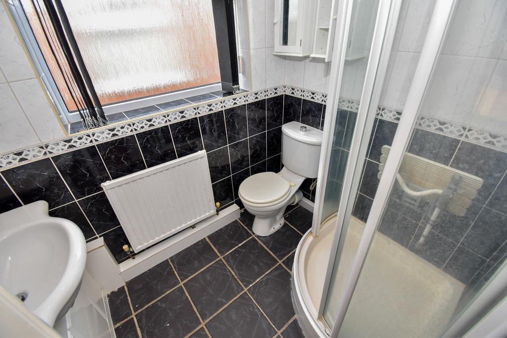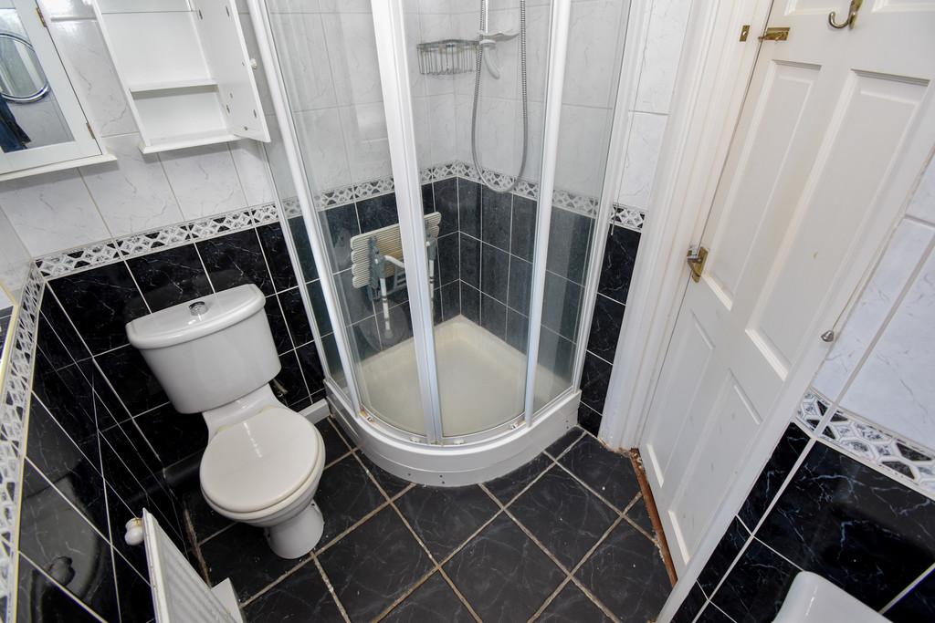 BATHROOM A three piece suite comprising of low flush WC, pedestal wash hand basin with storage below ad corner shower cubicle with electric shower over. Tiled flooring, radiator and double glazed opaque window to side.