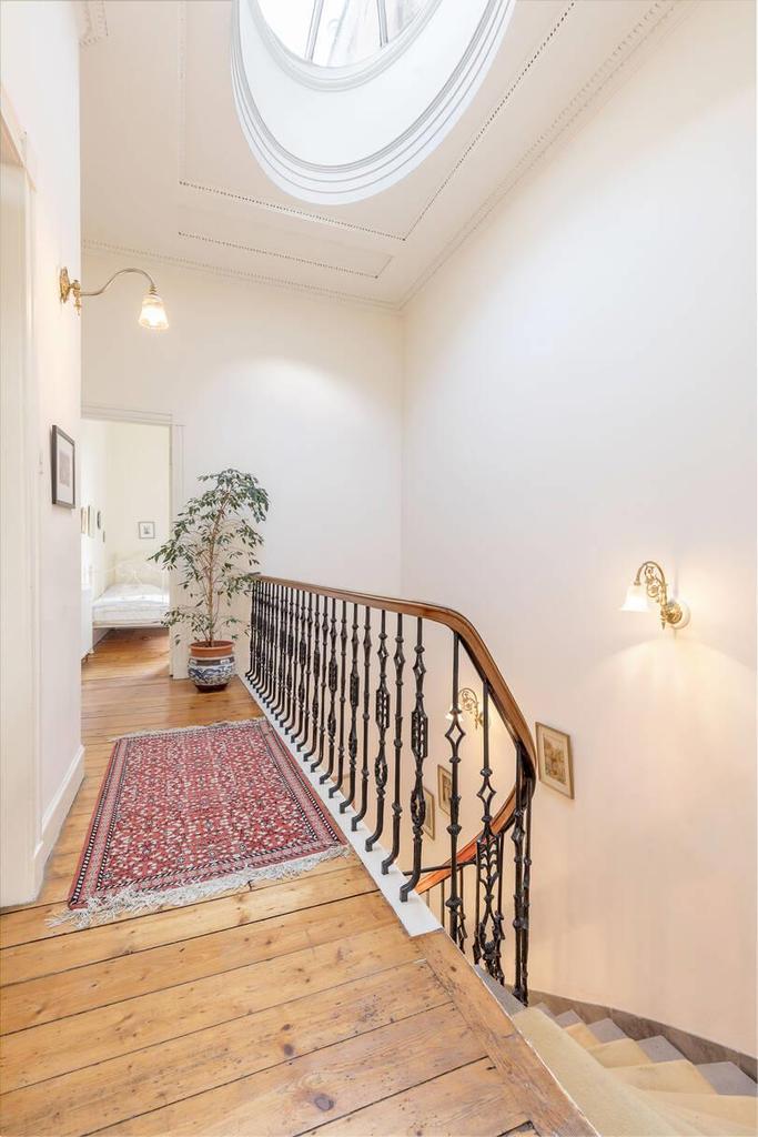 Immediately upon entering the vestibule, there is a sense of the Georgian proportions and period features, which continues throughout the property. The vestibule opens to a large hallway with the elegant stairs crowned by a cupola which floods the space with natural light. To the front of the ground floor is a generous reception room with a handsome fireplace and wood burner, as well as two west facing windows. Also on this floor are a double bedroom and the main family bathroom.