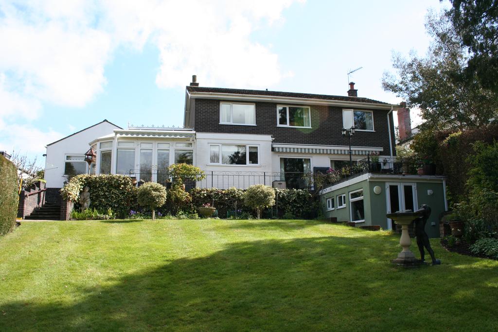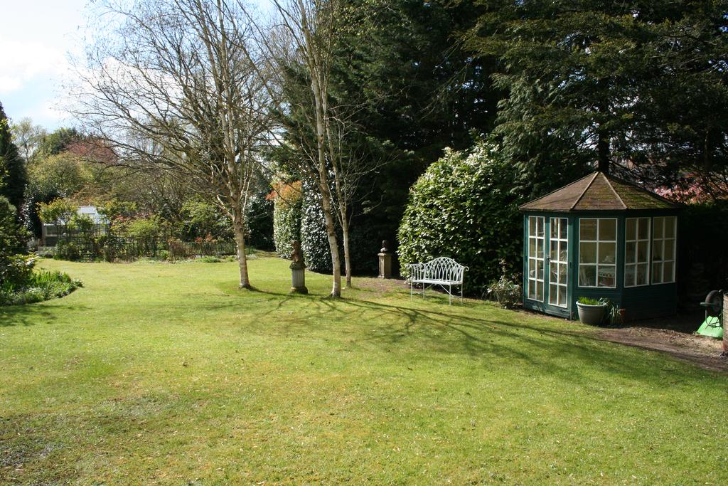 The front garden provides off road parking for several vehicles with shrub beds, lawn and a driveway leading to the double garage. In total the plot extends to about half an acre (stms). The beautifully landscaped south facing rear garden is a particular feature of the property and is laid to sweeping lawns with an ornamental pond, raised terrace, mature shrub borders, numerous mature trees, summer house, timber garden shed and a green house. There is a garden store built under the raised terrace at the rear of the house which could be converted into a studio or office if required. To the side of the property there is a hard standing area suitable for storage of a caravan or boat trailer. The double garage has power, light and sliding timber doors.