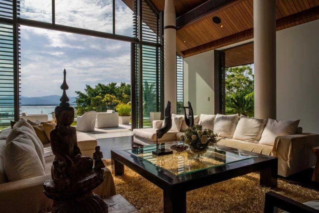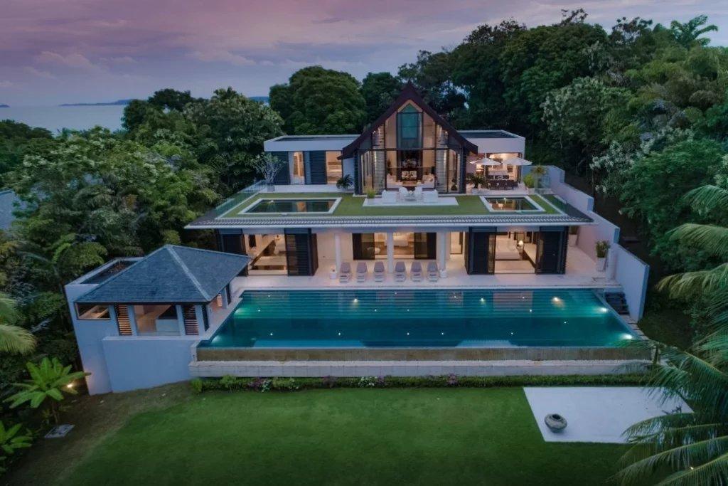 The Cape is Phuket's most elegant private community, set on a wooded peninsula overlooking the soaring limestone islands of Phang Nga Bay. World-leading designer Philippe Starck and visionary architect Jean-Michel Gathy, well known for his work with Aman resorts, have created a villa development that includes elegant private residences with private access to a world class spa and restaurant, and a variety of other luxury services.Villa Serenity is the only villa on Cape Yamu with uninterrupted seafront view and natural steps for ocean access, every morning you will wake up to spectacular views across the bay.Guide Price: USD 4,700,000 but converted to THB for this siteBedroom: Master Bedroom (Pool Level)Super king sized bed, en-suite bathroom with bath, separate rainshower & toilet, 2 x walk-in closets (with clothes hangers), double vanity, 2 pin sockets, safe, 2 lounge chairs & coffee table, hairdryer, air conditioning, smart TV with Bose sound system. Sea view and Pool view/access from the bedroom.Bedroom 2: (Pool Level)Super King sized bed, en-suite, separate rainshower & toilet, 2 x closets (with clothes hangers), double vanity, 2 pin sockets, hairdryer, air conditioning, TV., armchair. Sea view and Pool view/access from the bedroom.Bedroom 3: (Pool Level)Super King sized bed, en-suite, separate rainshower & toilet, 2 x closets (with clothes hangers), double vanity, 2 pin sockets, air conditioning, TV, armchair. Sea view and Pool view/access from the bedroom.Bedroom 4: (Terrace Level)Super King sized bed, en-suite, separate rainshower & toilet, triple closet (with clothes hangers), double vanity, 2 pin sockets, air conditioning, TV., Bose sound & docking station, armchair, desk & chair. Sea view.Bedroom 5: (Pool Level)Super King sized bed, en-suite, separate rainshower & toilet, 2 x closets (with clothes hangers), single vanity, 2 pin sockets, air conditioning, massive 75" Smart TV, Bose sound. Access to the pool and seafront.Media/Games Room: (Pool Level)JBL 7.1 surround sound system with 150? digital projection screen, Denon amplifier, DVD player & DVD's. Large Sofas/Chaise (with extra cushions), 2 x bean bags, large coffee table, 2 pin sockets, pool table.Gym: (Pool Level)Compact home gym, gym bench & north fitness dumbbells ? full set, treadmill, air-conditioning, television, gym toilet.Lounge (Terrace Level)2 x Large Sofas/Chaise, large coffee table, 2 x armchairs, telephone, mini-library, dining table & 6 chairs, desk. Upstairs toilet. Access to terrace and sea view.Kitchen Diner (Terrace Level):Oven, coffee machine, kettle, microwave, double fridge with ice maker, smoothie maker, wine fridge cooler, breakfast bar 4 chairs, gas & induction hob, dishwasher, large dining room table ? 10 chairs, doors open out onto terrace Sala.Terrace:Dining table, 8 chairs (covered area).Seating area with coffee table, 2 large umbrellas.Pool:Infinity pool, sea view, 6 x pool loungers, outdoor shower.Sala (Pool Level):2 x Sofas, mini fridge, sink, ceiling fan, coffee table, pool lights.Laundry Room:Washing machineDryerStorageMaids bathroom (shower & toilet)