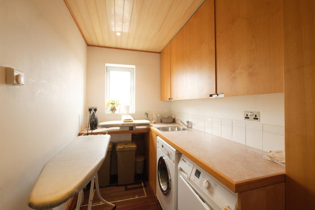 Laundry approx. 10'8 x 5'3 with plumbing for washing machine and tumble drier, sink unit and extra deep wall mounted storage cupboards. Door to Walk-In Pantry with multiple shelves and space for fridge/freezer.