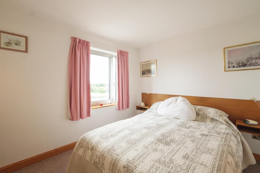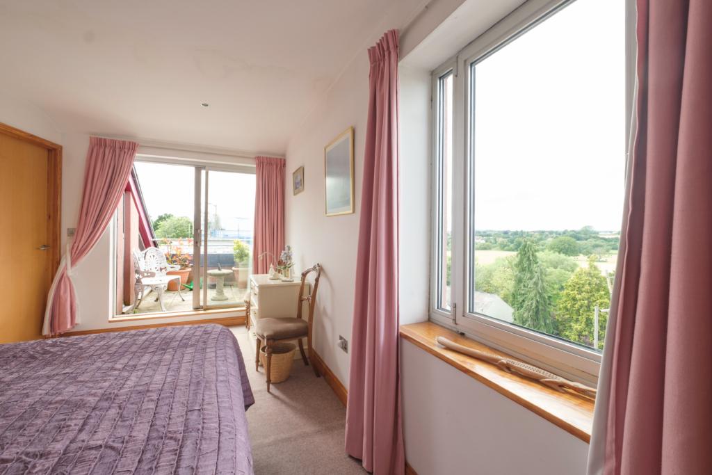 Bedroom Two approx. 10'11 x 9'2 with double glazed window again enabling stunning outlook. Two narrow doors to wardrobe space and door through to En-Suite Shower Room and W.C. with corner shower, vanity unit comprising wash hand basin with storage beneath, and low level W.C. Dual voltage shaver points. Heated towel rail/radiator.