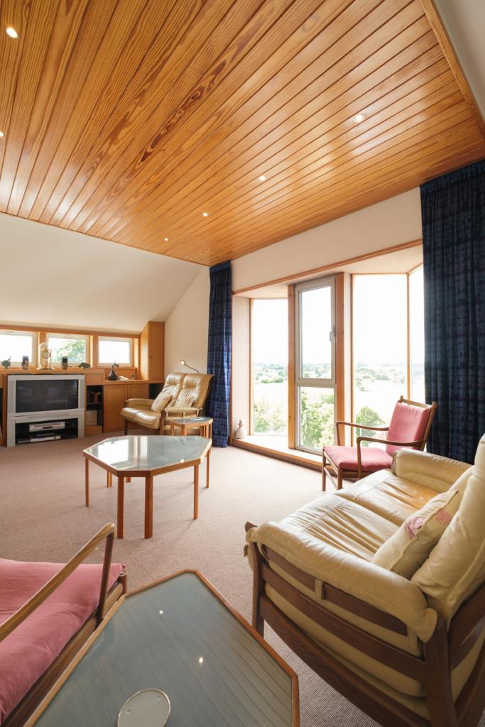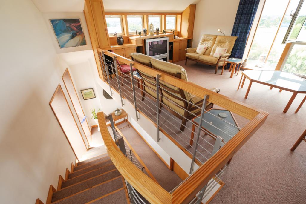 Constructed some 22 years ago to the exacting standards of the Architect creator, Leobhan lies some 300yds west of Ross town centre, and commands absolutely stunning views across the famous horseshoe bend of the River Wye. The structure occupies an elevated, cliff top location and thus has no conventional garden to maintain, and offers spacious and truly individual accommodation on several levels. The views from the property are extensive, extending way beyond the river itself across hundreds of acres of unspoilt and undulating countryside towards the Welsh hills in the distance.