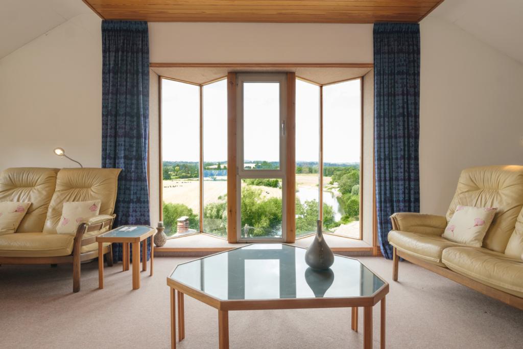 Sitting Room of max dimensions approx. 24'2 x 17'10. An amazing room from which there is a quite outstanding vista across the Wye and beyond. Positioned to either end of this generous room are a host of fitted cupboards and storage areas, many finished in most attractive Ash. Light admittance is from four elevations, meaning that the room benefits from natural daylight at virtually all times of the day. Positioned to one corner of the room is a small, yet most practical Kitchenette.
