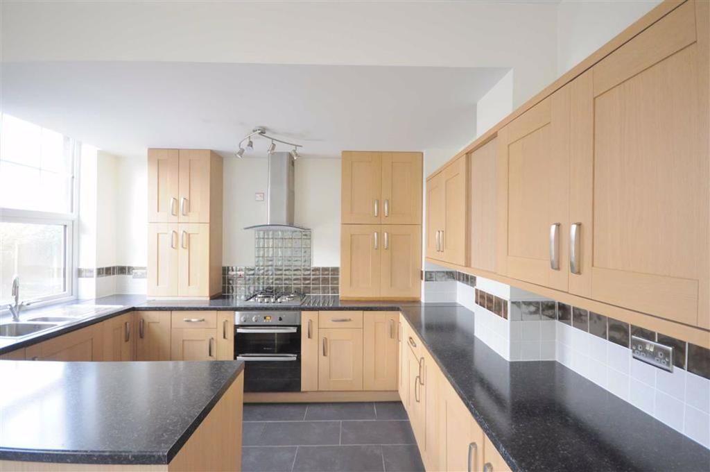 Kitchen Diner - A modern dining kitchen fitted with an extensive range of oak door fronted wall & floor units, under wall unit lighting, black marble effect work surfaces & breakfast bar, tiled splash-backs & inset 11/2 bowl stainless steel sink & drainer with chrome swan neck mixer tap. Upvc double glazed square bay & window to the rear of the property, mock fire place with oak fire surround & brick back, tiled floor & doorway to the breakfast room. Wall mounted Baxi Neta-Tec gas combi central heating boiler. Appliances include: stainless steel gas hob with extractor hood & light above, electric double oven, space & plumbing for a dishwasher.
