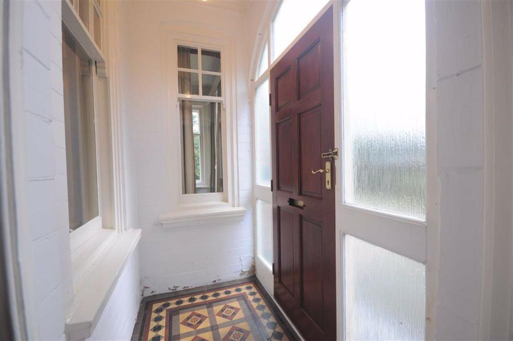 Entrance Porch - Panelled hardwood front door with obscure glazed side lights opens to the fully enclosed storm porch. With Minton tile floor, ornate coving & light.