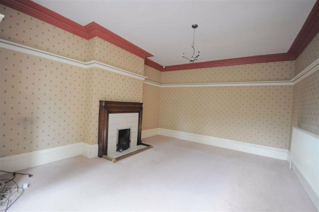 Lounge - An large reception room offering five sash windows to the front & side elevations, ornate ceiling rose & coving, two radiators, tiled fireplace with open fire grate.