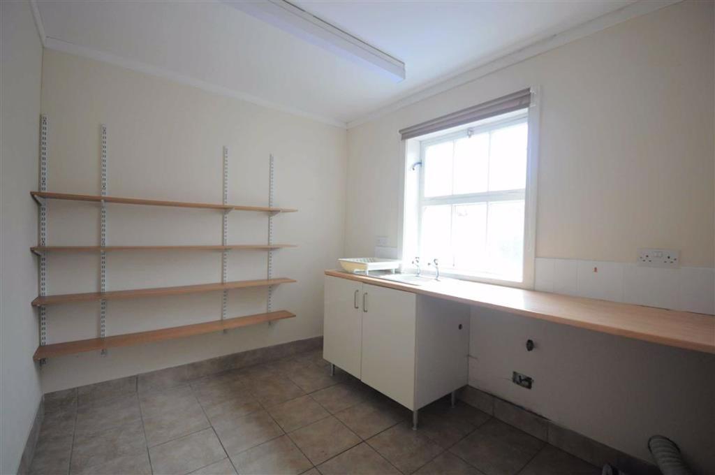 Laundry Room - Offering fitted base units with block wood effect work surface & inset stainless steel sink & drainer with chrome taps. Window facing the courtyard, tiled floor, plumbing for washing machine, space for tumble dryer & plenty of other appliances.