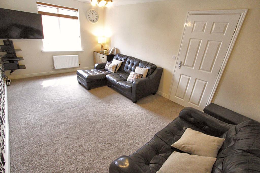 3.1m x 5m (10' 2" x 16' 5") Spacious lounge with window to the front. Carpeted.
