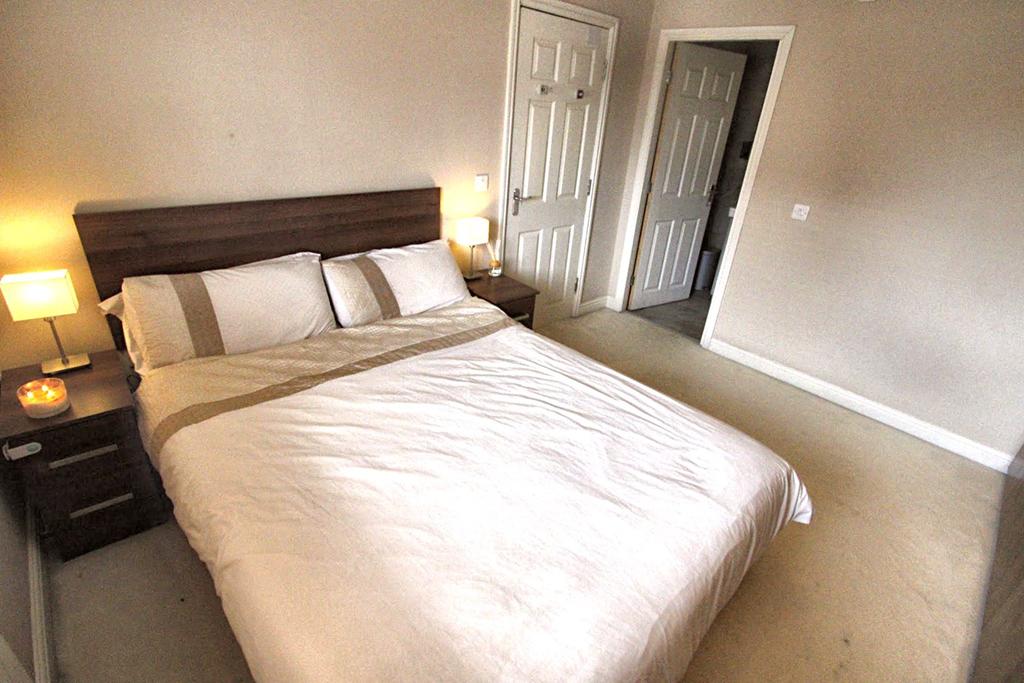 3.6m x 3.2m (Into robes) (11' 10" x 10' 6") Stunning master bedroom, carpeted with fitted wardrobes and en-suite stylish shower room with fully tiled walls and flooring.