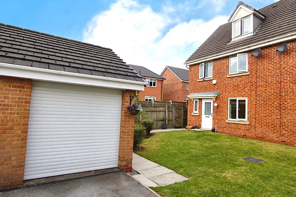 Externally, the property has a driveway leading up to a detached garage with a paved path and front lawned garden. There is also a low maintenance rear garden with faux grass and patio areas. Situated on a corner plot of a highly sought after residential cul-de-sac, close to local schools, shops, amenities and major transport links.