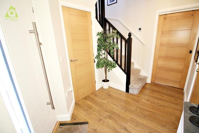 The utility room has plumbing for a washing machine and tumble dryer, quartz work surface, laminate flooring and spot lights to the ceiling.