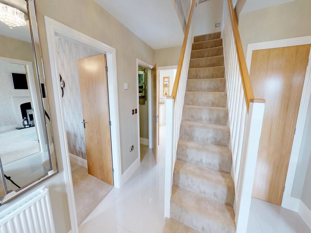 The Bond is a stunning five bedroom detached family home, offering flexible and modern accommodation throughout. Ground floor has a spacious and impressive entrance hall with a staircase to center. Off the hall is a large kitchen/ family room with French doors giving access to rear garden. The kitchen leads to the utility which also has outside access. There is a generous separate dual front aspect lounge which also enjoys French doors opening out to the rear garden. Upstairs are the five bedrooms, family bathroom and bedroom one with en suite