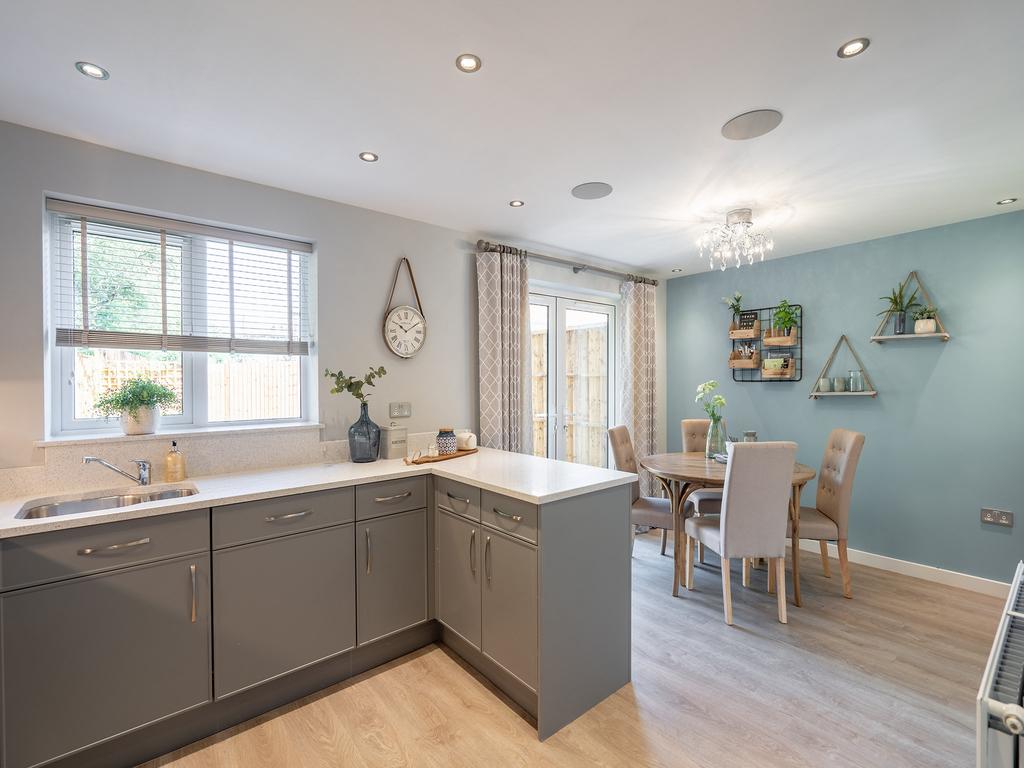 Enjoy the best of modern living in this popular three-bedroom home which benefits from a stylish open plan kitchen/diner with French doors leading into the garden. The Hatfield's bright front aspect living room, separate utility room, handy storage cupboard and downstairs cloakroom complete the ground floor. Upstairs, bedroom one has an en suite and there's a good-sized family bathroom and further storage.