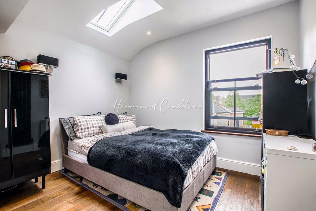 Bedroom Three - 10'6 x 9'2 (3.20m x 2.79m) - Double glazed sash window to rear, Velux skylight to side, sunken ceiling spotlights, wall-mounted vertical radiator, power points.