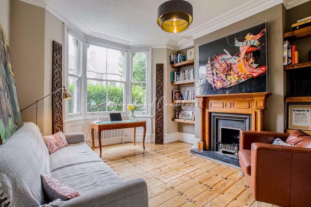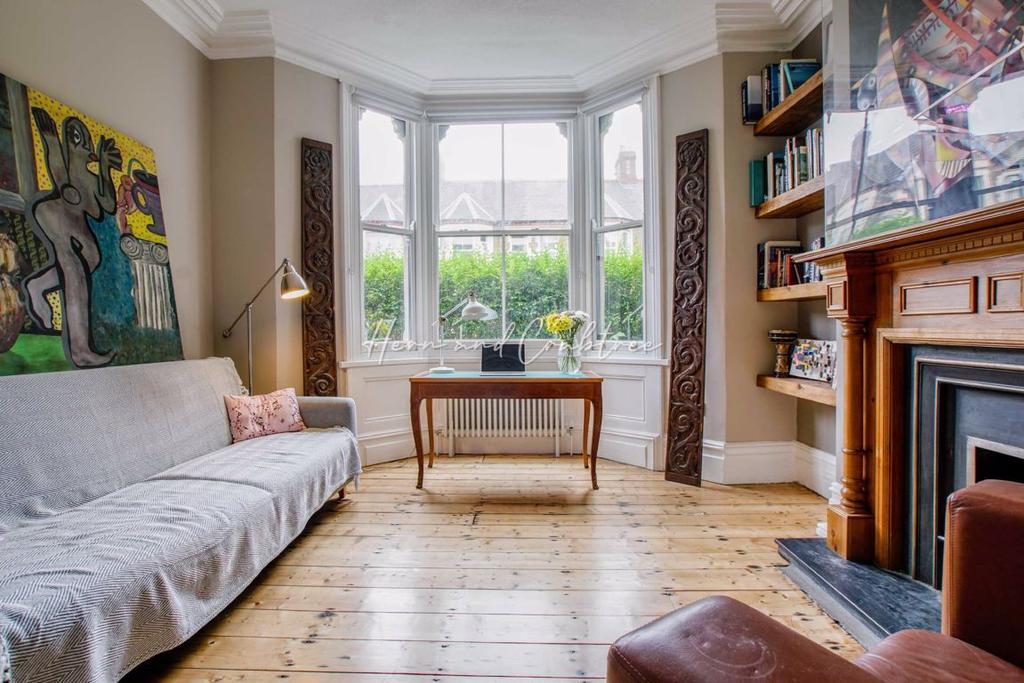 Bedroom One - 16'3 x 14'6 into bay (4.95m x 4.42m into bay) - Double glazed sash bay window to front with second double glazed sash window alongside. Original cornicing, picture rail, two radiators, fitted wardrobes, exposed wood floorboards, power points and fireplace with tiled surround, mantle and hearth.