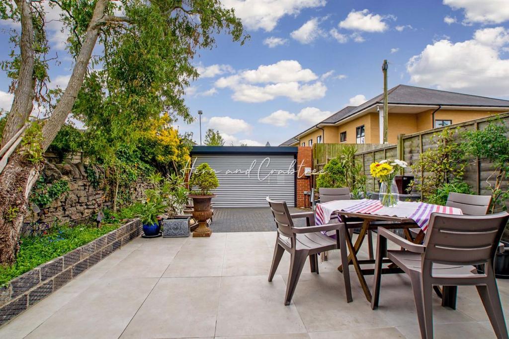 Rear Garden - The newly landscaped garden offers a south facing aspect. Full-width raised tiled patio, perfect for summer barbecues and 'Al-fresco' dining. Raised flower border and block-paved parking area accessed via electric roller shutter. Electric car charging point and armoured cable for power and jacuzzi installation. Integrated bike stand and custom lighting with control.