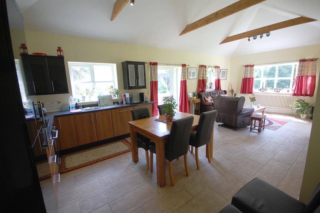 On the opposite side elevation there are double-glazed French doors opening onto the main patio and garden in front of the house. Wall-mounted consumer unit with MCB's. Connecting door as previously mentioned from the main house dining room.